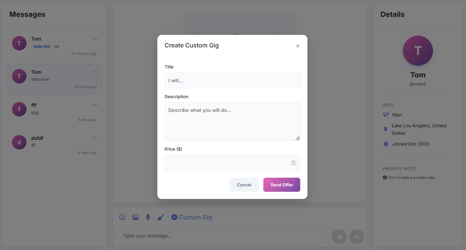- Create your own type of gigs, no fixed categories